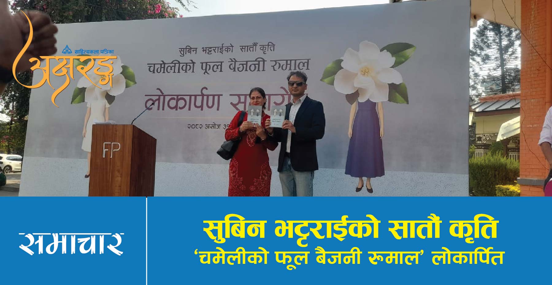 सुबिन भट्टराईको साँतौ कृति ‘चमेलीको फूल बैजनी रूमाल’ लोकार्पित