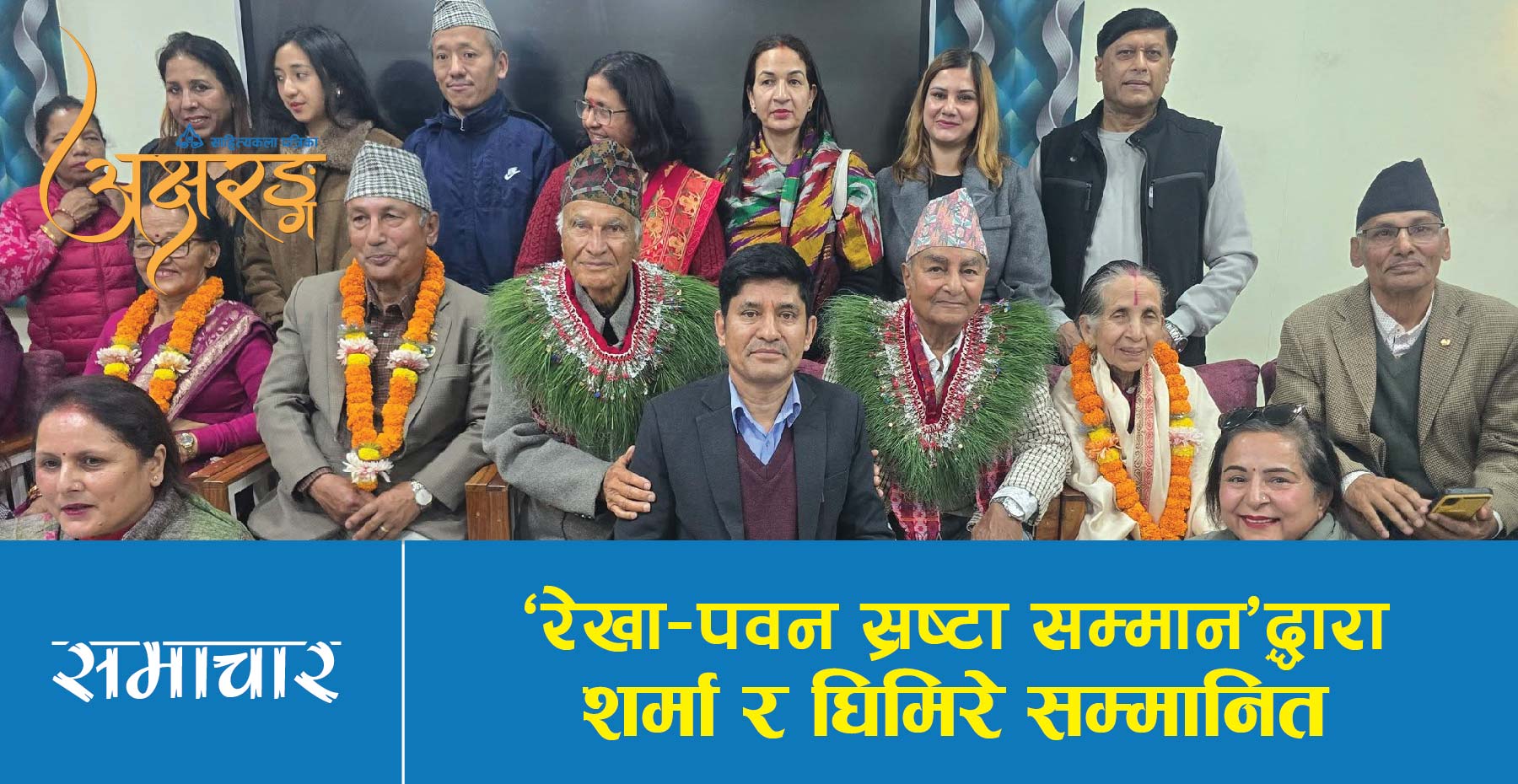 ‘रेखा–पवन ’स्रष्टा सम्मान’द्धारा शर्मा र घिमिरे सम्मानित