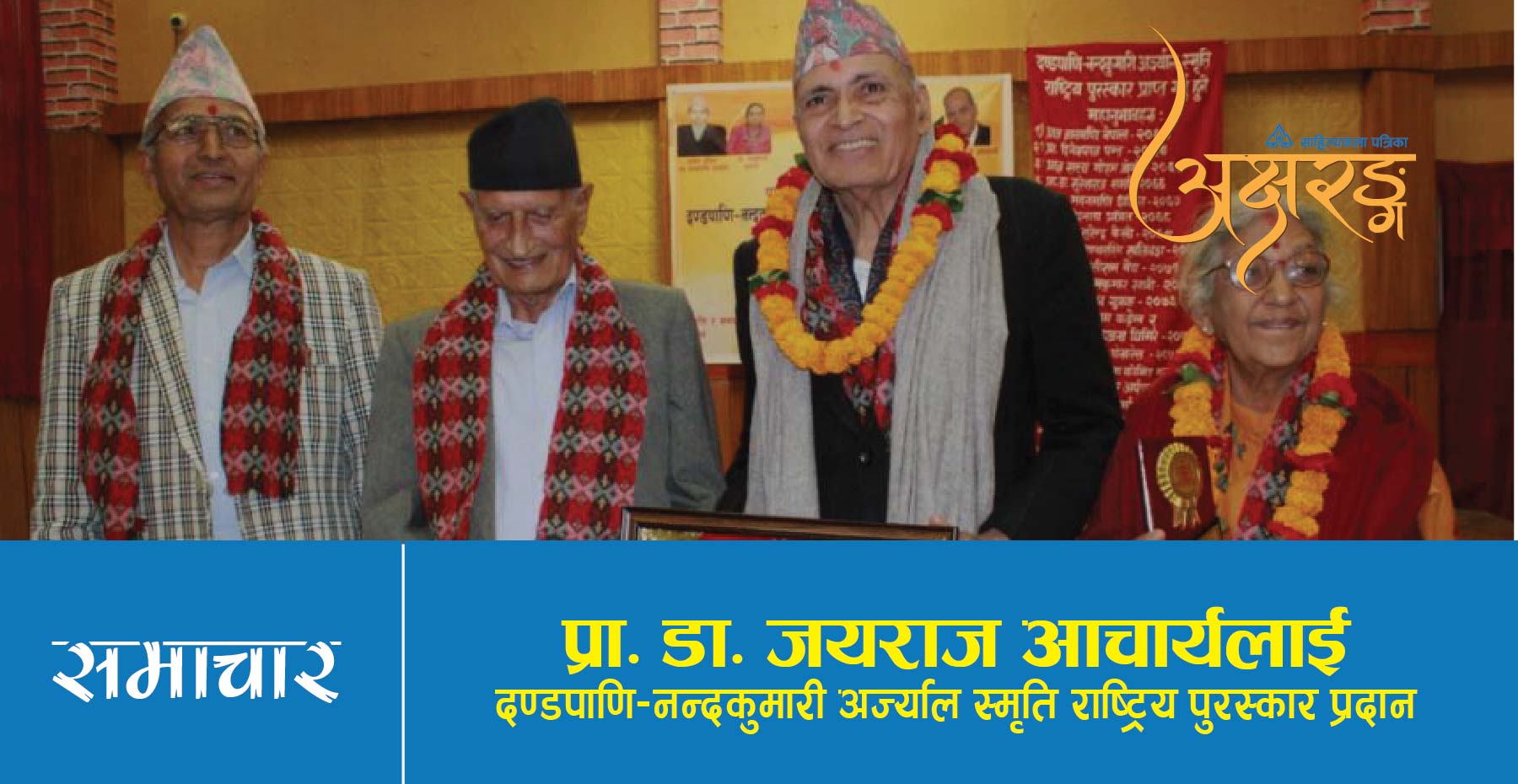 प्रा. डा. जयराज आचार्यलाई दण्डपाणि–नन्दकुमारी अज्र्याल स्मृति राष्ट्रिय पुरस्कार प्रदान