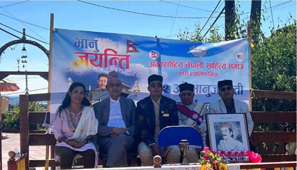 अन्तर्राष्ट्रिय नेपाली साहित्य समाज, उत्तरी क्यालिफोर्निया च्याप्टरको आयोजनामा २१२औँ भानु जयन्ती मनाइयो अमेरिकाको क्यालिफोर्निया राज्यको बे एरियामा अवस्थित मुक्तिनाथ धाममा २१२औँ भानु जयन्ती मनाइएको हो । कार्यक्रमका प्रमुख अतिथि अनेसासका केन्द्रीय अध्यक्ष सर्वज्ञ वाग्ले हुनुहुन्थ्यो भने अतिथिमा प्रा. धर्मराज कोइराला लोककवि सुरेशकुमार भट्ट हुनुहुन्थ्यो । कार्यक्रम अनेसास उत्तरी क्यालिफोर्नियाका अध्यक्ष बाबु आचार्यको अध्यक्षतामा भएको थियो ।