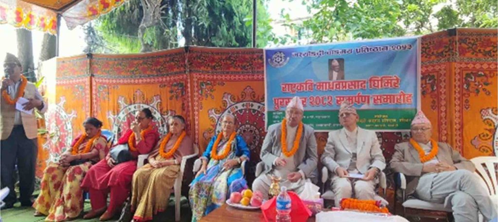 राष्ट्रकवि माधवप्रसाद घिमिरे पुरस्कार-२०८२ बाट विशिष्ट कवि प्रा. घनश्याम कँडेललाई सम्मान गरिएको छ । मस्र्याङदी वाङ्मय प्रतिष्ठानले मंगलवार राष्ट्रकवि स्व.घिमिरेको घरमा आयोजित पुरस्कार समर्पण समारोहमा उहाँलाई सम्मान गरिएको हो । समारोहका प्रमुख अतिथि प्रा.डा. वासुदेव त्रिपाठी र राष्ट्रकवि घिमिरेकी धर्मपत्नी महाकाली घिमिरेले संयुक्त रुपमा विशिष्ट कवि कँडेललाई पुरस्कार प्रदान गर्नुभएको थियो । उक्त पुरस्कार नगद एक लाख रुपैयाँ राशीको रहेको छ ।
