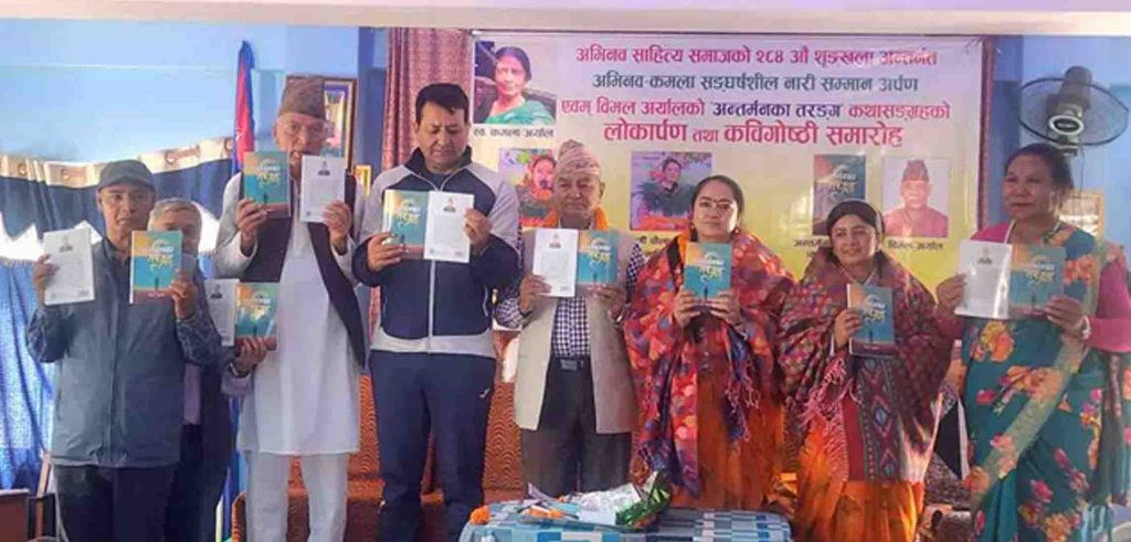 कार्यक्रममा प्रमुख अतिथि घिमिरे, गोकर्णेश्वर नगरपालिकाका प्रमुख दीपक रिसाल, उपप्रमुख सान्नानी लामा, समाजका अध्यक्ष गोविन्द घिमिरे ‘वेदमणि’, विमल अर्याल लगायतले मन्तव्य राखे । २०३८ सालदेखि सिर्जना गर्न थालेका कथाकार अर्यालका यस कृतिमा ५१ वटा कथा संकलित छ ।
