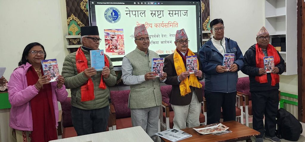 नेपाल स्रष्टा समाजले संस्कृतिविद् प्रेममान डंगोलको ‘चित्रमय चाडपर्वको देशः नेपाल’ लोकार्पण र परिचर्चा गरेको छ । राजधानीमा आयोजित एक कार्यक्रममा डा. पुरुषोत्तम लोचन श्रेष्ठ, श्रीओम श्रेष्ठ रोदन, प्राडा लक्षमणप्रसाद गौतम, शितल गिरी, स्रष्टा संस्कृतिविद् प्रेममान डंगोल लगायतले संयुक्त रूपमा लोकार्पण गरे।