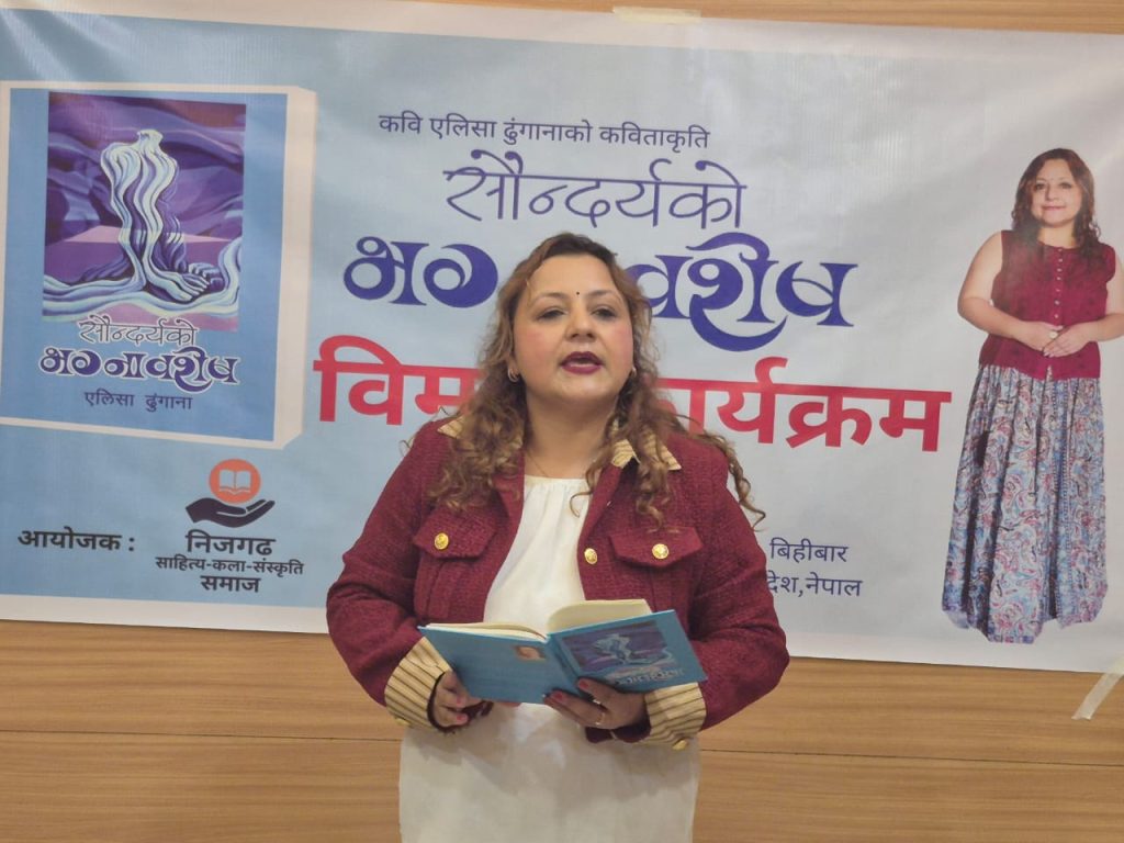 निजगढ साहित्य–कला–संस्कृति समाज, बाराद्वारा बिहीबार कवि एलिसा ढुंगानाको कविताकृति ‘सौन्दर्यको भग्नावशेष’माथि विमर्श कार्यक्रम आयोजना गरेको छ । समाजका अध्यक्ष सुको साइबरको अध्यक्षतामा सम्पन्न कार्यक्रमका प्रमुख अतिथि कवि तथा प्राज्ञ शशी लुमुम्बूले कविताकृतिमाथि प्रकाश पार्दै भने, “एलिसाका कवितामा नारी संवेदना, प्रेम–प्रणय र सामाजिक रूपान्तरणको गहिरो आकांक्षा कलात्मक रूपमा अभिव्यक्त हुन्छन् । उनका कविता सरल, सम्प्रेषणीय र समय–सापेक्ष भावभूमि बोकेका प्रभावशाली छन् ।”
