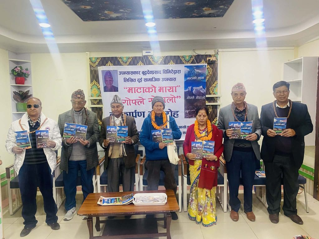 उपन्यासकार बुद्धदेवप्रसाद घिमिरेका दुई उपन्यास ‘माटाको माया ‘र ‘गोफ्ले गोठालो’ लोकार्पित भएको छ । उपन्यास समाजको आयोजनामा भएको उक्त कार्यक्रममा रोचक घिमिरे, प्रा. डा. दयाराम श्रेष्ठ, डा. गोविन्दमान सिंह कार्की, श्रीओम श्रेष्ठ ‘रोदन’, शंकर भारती, उपन्यासकार घिमिरे, उपन्यासकारकी धर्मपत्नि कुसुम घिमिरे लगायतले लोकार्पण गरे ।