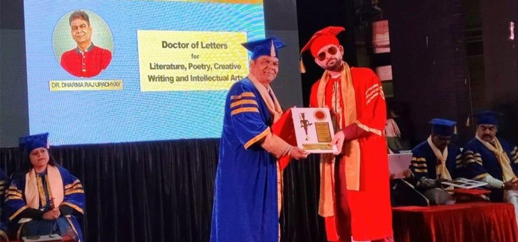 विश्व कीर्तिमानी गीतकार तथा उपन्यासकार डा. डीआर उपाध्यायलाई मानार्थ विद्यावारिधि प्रदान गरिएको छ । भारतको लखनउमा भएको एक विशेष समारोहमा डा. उपाध्यायलाई युरोपको आइआइइचएसआर विश्वविद्यालयले उनलाई विद्यावारिधि प्रदान गरेको हो ।