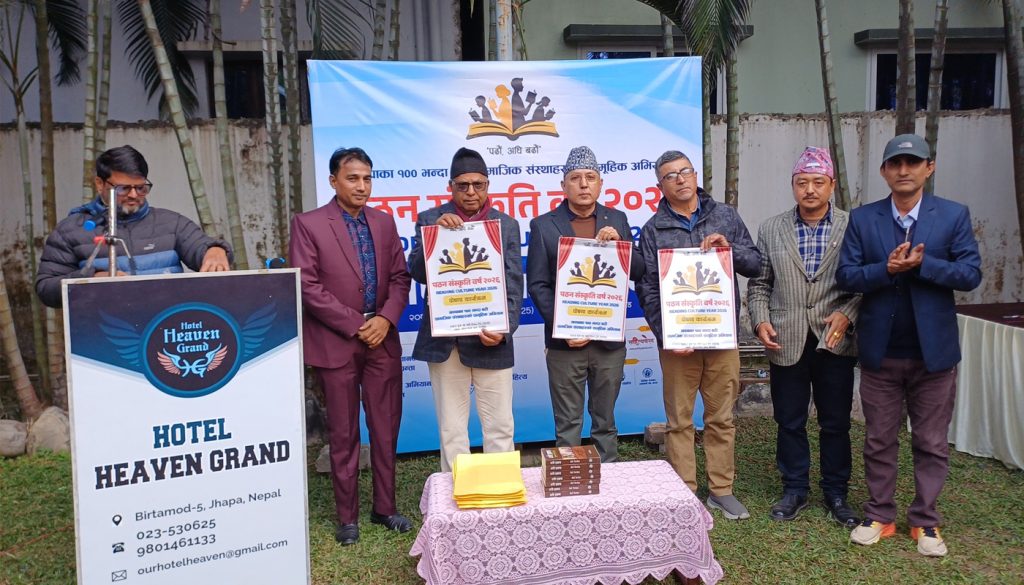 ‘रिडर्स अभियान, नेपाल, ‘अभियानका लागि अभियन्ता, ‘वीरता रिडर्स, ‘झापाली साहित्य समाज समेत ४ संस्थाले होटल हेवन ग्रान्ड विर्तामोडमा आयोजना गरेको ‘पठन संस्कृति वर्ष–२०२६’को घोषणा कार्यक्रम सम्पन्न भएको छ । कार्यक्रम अनौपचारिक रूपमा सुरु भयो( शून्य समय भनेर खगिन्द्रा खुसीको संचालनमा कविता, गीत, गजल गायनका रूपमा ।