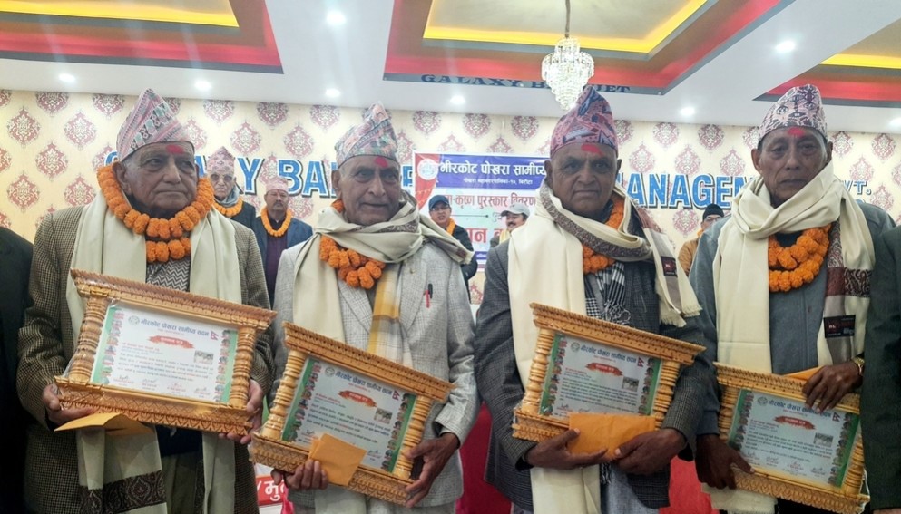 भीरकोट पोखरा सामीप्य सदनले स्याङ्जा घर भई विभिन्न विधामा उल्लेखनीय योगदान पुरयाएका चार जनालाई सम्मान गरेको छ । संस्थाले प्रदान गर्दै आएको मुना–कृष्ण पुरस्कार वितरण–२०८२ अन्तर्गत शिक्षा, समाजसेवा, कृषि र साहित्य विधामा योगदान पुरयाएका व्यक्तित्वलाई सम्मान गरेको हो ।