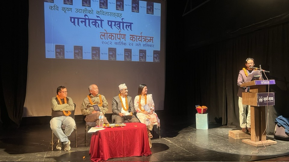 कवि कृष्ण उदाशीको कविता सङ्ग्रह ‘पानीको पर्खाल’ राजधानी काठमाडौंमा विमोचन गरिएको छ। गत शनिबार काठमाडौंको सर्वनाम थिएटरमा आयोजित विशेष कार्यक्रममा उक्त कृति विधिवत रूपमा सार्वजनिक गरिएको हो । अग्रज कवि तथा गीतकार श्रवण मुकारुङको प्रमुख आतिथ्यतामा सम्पन्न कार्यक्रममा कवि श्रवण मुकारुङ, समीक्षक डा. अशोक थापा, कृतिका सर्जक कृष्ण उदाशी र उपन्यासकार जयराम तिम्सिनाले संयुक्त रूपमा कृतिको विमोचन गर्नुभएको थियो ।