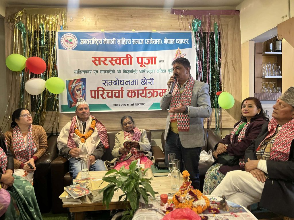 कार्यक्रममा स्वागत मन्तव्य अनेसासका उपाध्यक्ष निर्मल रमण पराजुलीले गर्नु भएको थियो । श्रीपंचमीको अवसरमा सरस्वतीको प्रतिमामा पूजा अर्चना गरेर कार्यक्रमलाई सुरु गरिएको थियो । अनेसास नेपाल च्याप्टरकी महासचिव रन्जना निरौलाले संचालन गरेको उक्त कार्यक्रममा डा. शशी पण्डित, राधा दुलाल, वसन्त अज्ञातलगायतका स्रष्टाहरूको बाक्लो उपस्थिति रहेको थियो ।