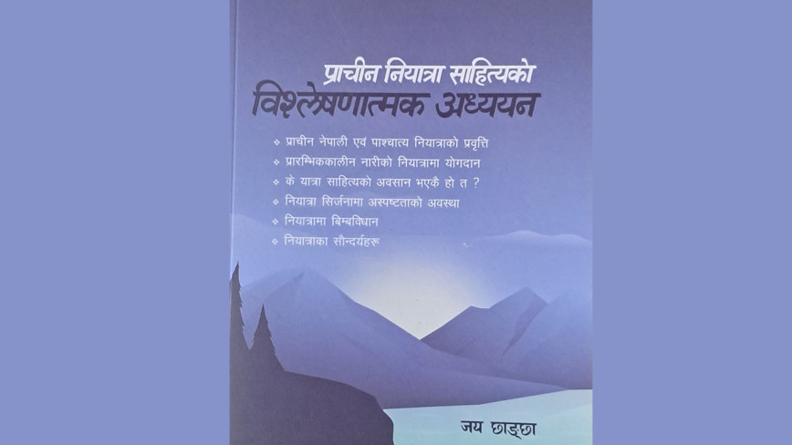 नियात्रासाहित्यमा कलम चलाउँदै आएका साहित्यकार जय छाङ्छाको नयाँ पुस्तक ‘प्राचीन नियात्रा साहित्यको विश्लेषणात्मक अध्ययन’ प्रकाशित भएको छ । यस अनुसन्धानकृति भित्र प्राचीन नेपाली एवं पाश्चात्य नियात्राको प्रवृत्ति, नियात्रा सिर्जनामा अस्पष्टताको अवस्था, नियात्रामा बिम्बविधानलगायतका विषयहरू समेटिएको छ ।