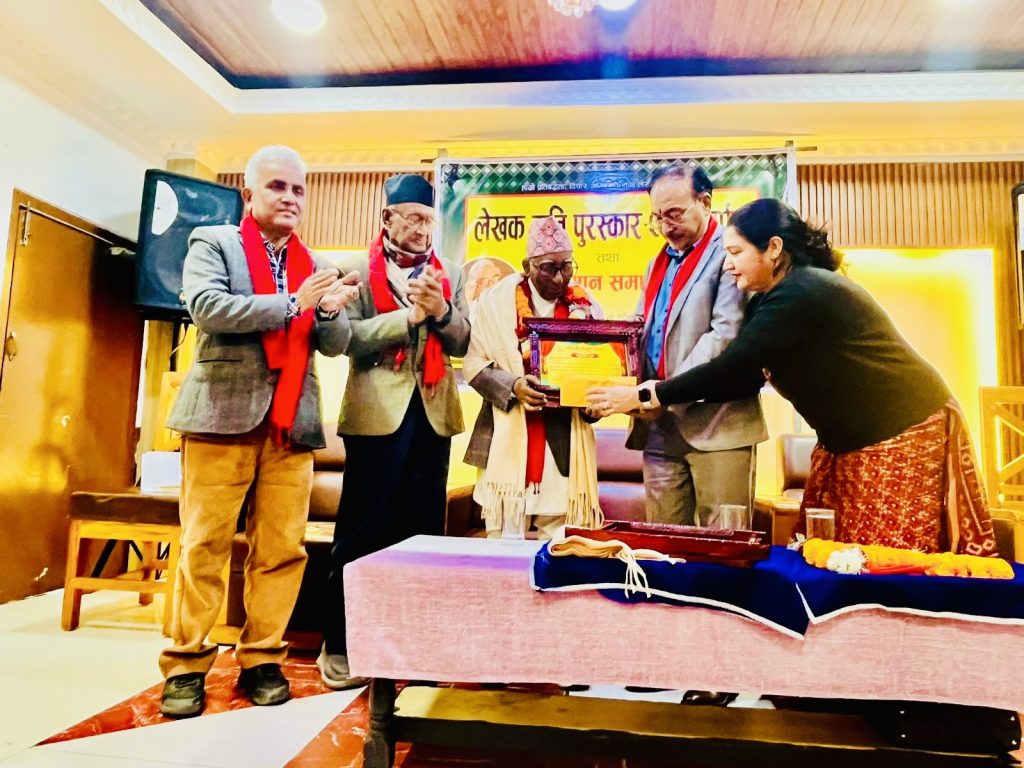 नेपाली लेखक सङ्घ कास्कीले लेखक कृति पुरस्कार २०८१ र स्रष्टा सम्मान कार्यक्रम एक भव्य समारोहका बिच सम्पन्न गरेको छ । गण्डकी प्रदेशमा जन्मले वा कर्मले क्रियाशिल लेखकको पुस्तकलाई पुरस्कृत गर्ने अभिप्रायले स्थापित लेखक कृति पुरस्कार यसपटक २०८१ सालमा प्रकाशित पुस्तकहरु मध्येबाट छनौट गरी नवलपुरका स्रष्टा वरिष्ठ कवि गोविन्दराज विनोदीको पुस्तक अलङ्कार इन्द्रेणी लाई रु पच्चिस हजार सहित पुरस्कृत गरिएको छ । त्यसैगरी वरिष्ठ कवि तारा पाखेलाई लामो समय नेपाली साहित्यमा योगदान दिए वापत स्रष्टा सम्मान गरिएको छ । डा. लक्ष्मीशरण अधिकारीको संयोकत्वमा डा गणेश शर्मा र डा विष्णुप्रसाद शर्मा सदस्य साथै संस्थाका अध्यक्ष र सचिव पदेन सदस्य रहेको समितिले कृति छनोट गरी कार्यसमितिलाई पुरस्कारकोलागि सिफारिस गर्दै कार्यसमितिको मिटिङले सिफारिसलाई अनुमोदन गरेको हो ।