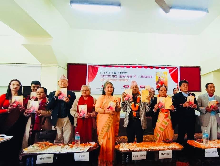 मनोविद् तथा साहित्यकार डा. सुमाया राईको आत्मकथात्मक कृति ‘जिन्दगी फूल सम्झे फूलै हो’ जीवनयात्रा सार्वजनिक गरिएको छ। शनिबार काठमाडौंमा आयोजित समारोहमा प्रा.डा. गोविन्दराज भट्टराई, पूर्वसांसद प्रमिला राई, अधिकारकर्मी बमकुमारी बुढा, आदिवासी जनजाति उत्थान राष्ट्रिय प्रतिष्ठानका पूर्वउपाध्यक्ष जितपाल किरात, किरात राई यायोक्खाका कार्यवाहक अध्यक्ष युवराज राई तथा लेखक राईले संयुक्त रूपमा कृति सार्वजनिक गर्नुभएको हो ।