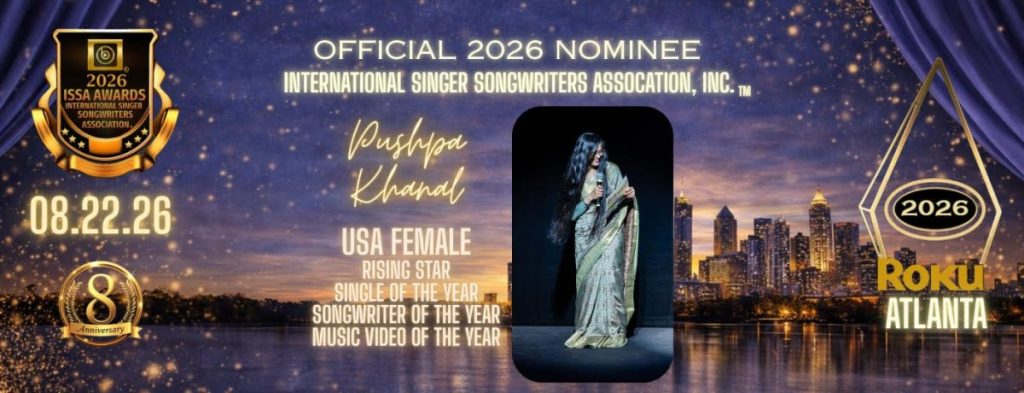 फेयरफ्याक्स, अमेरिका नेपाली गीतकार पुष्पा खनालले आफ्नो गीति यात्रामा एक महत्त्वपूर्ण उपलब्धि हासिल गरेकी छिन् । उनलाई ‘आइएसएसए अवाड्र्स अमेरिका २०२६’ (ISSA Awards USA 2026) को चार प्रतिष्ठित विधाहरूमा मनोनित गरिएको छ ।